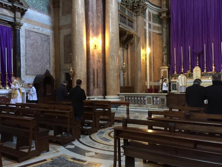 My friends here in Rome along with the two priests who help with the Juventutem group at the parish made the Seven Church pilgrimage the Saturday before Palm Sunday. I was so eager to make the pilgrimage, as I had just read in the life of Saint Paul of the Cross, the founder of the Passionists, that he made the pilgrimage during one of his last stays in Rome, 50 years after he had made his private vows, of Poverty, Chastity, Obedience, and spreading devotion to the Passion, in the Salus Populi Romani Chapel in Saint Mary Major.