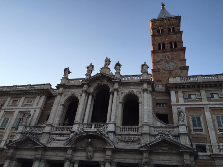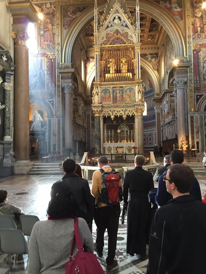 We made our way to Saint John Lateran where we prayed at the High Altar there. We were reminded by the priest of the desire for the Church to connect intimately with the Holy Land, where Our Lord dwelt, by having in Rome (and in other cities) it’s own Upper Room (a portion of the table of the Last Supper is at St. John Lateran), Praetorium (where Our Lord was condemned to death, the Holy Stairs), Calvary (The Holy Cross in Jerusalem), Nativity (a large portion of the Crib is at Saint Mary Major), to essentially keep in memory the Life of Our Lord Jesus Christ.
