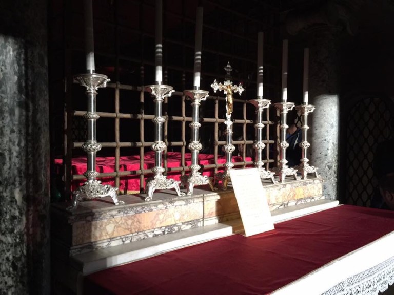 We also visited the Quo Vadis Church where Peter asks Jesus “Quo vadis?” (“Where are you going?”), to which He replies, “Romam eo iterum crucifigi” (“I am going to Rome to be crucified again”). Peter thereby gains the courage to continue his ministry and returns to the city, to eventually be martyred by being crucified upside-down.