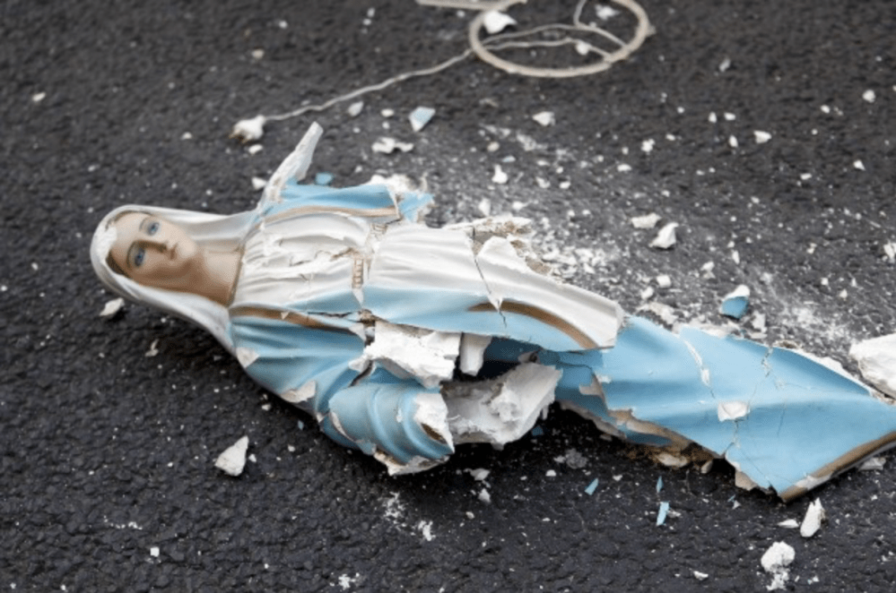 In the neighborhood I was living in at that time, there were signs immediately put up calling for people to make reparation. The group of the manifestation (which resulted in cars being set on fire and windows of store fronts smashed in, and as the picture above shows even the destruction of an image of Our Lady) was known as the Black Bloc. The response for reparation was known as the White Bloc. Regardless of whether or not the manifestation had a disdain for piety, religion, or the faith, we see from this particular example the disorder, the sorrow, the pity of a life without Our Lady, without Our Lord. We see the destruction that comes from a life of following one’s passions, from moving from one worldly delight to the next. Things that will all pass. Vanities that will fade. Joys that vanish as soon as they arise.