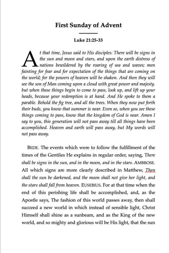 Some of you have been following my project over the past year — the compilation of commentary on the Sunday (and Major Feasts) Gospels. The first phase was completed last Fall, but the editing phases have been moving slowly as I’ve been finishing my degree.