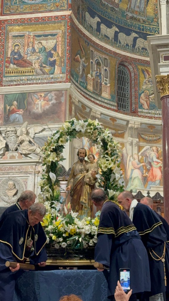 Once arrived in Trastevere, a statue of St. Joseph carried by Corsican confraternities greeted the Madonna. Various hymns were sung in Italian and Corsican, bringing many to tears.