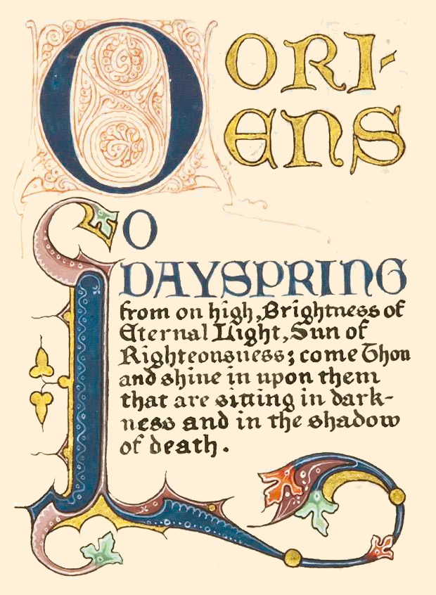 “O Oriens, splendor lucis aeternae, et sol justitiae: veni et illumina sedentes in tenebris et umbra mortis.”
