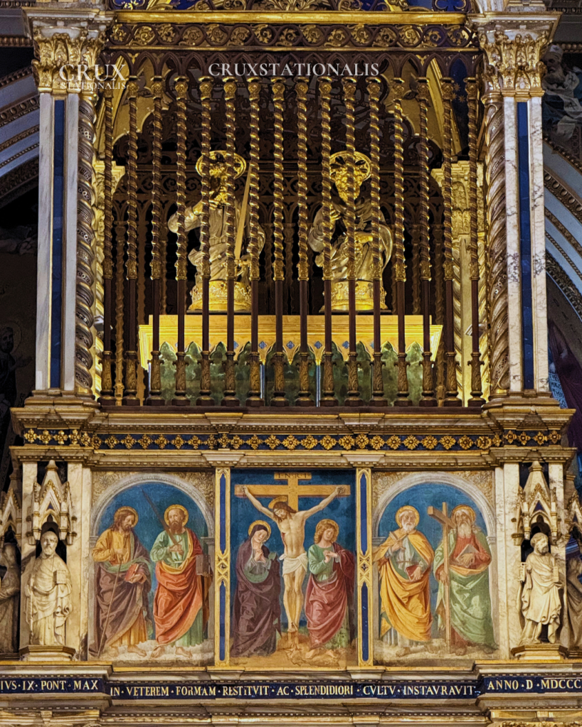 The current cathedra, located in the apse of the basilica, is a 19th-century structure built during restorations under Pope Pius IX, incorporating remnants of an ancient wooden throne believed to date back to the early Christian centuries. Though it has been renewed and redecorated over time, the throne’s enduring symbolism remains: it is the seat of Peter, passed on through his successors.