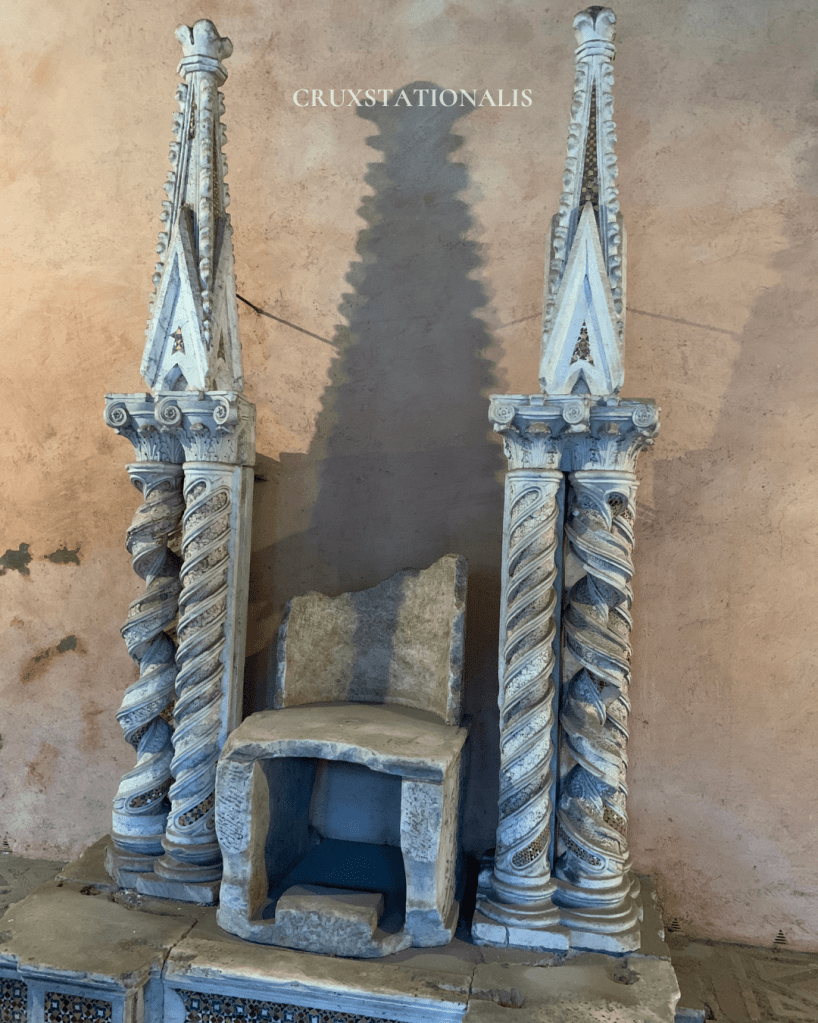 The word cathedra signifies the seat of a bishop’s teaching authority, from which we get the term “cathedral.” At St. John Lateran, this throne symbolizes the Pope’s role not only as universal pastor but also as the Bishop of Rome, the local shepherd of the Church in the Eternal City.