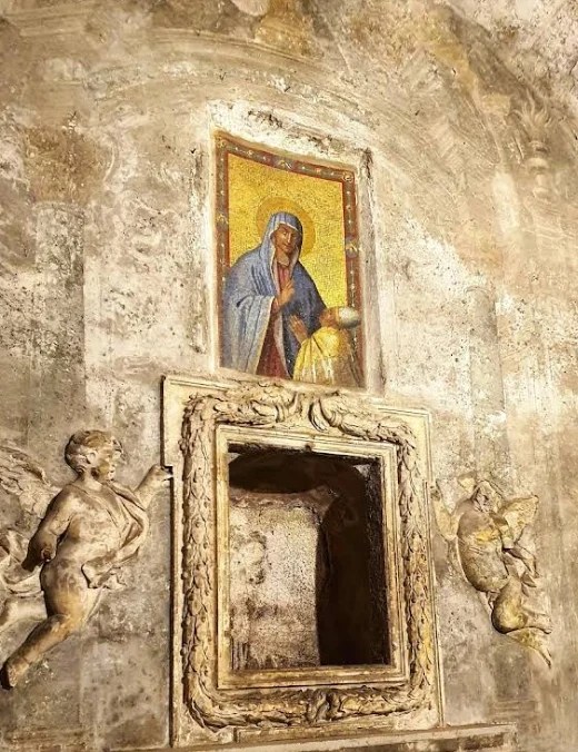 The remains of these early structures are still visible today in the crypt beneath the church, where fragments of the ancient Roman building and early Christian phases can be seen.